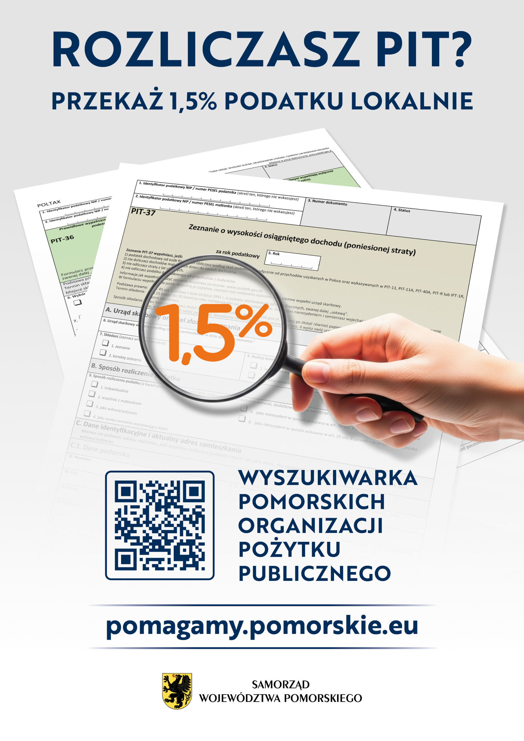 Zachęcamy do korzystania z materiałów promujących kampanię „Pomagaj lokalnie – przekaż 1,5% pomorskim OPP”. Poniżej znajdziesz materiały, które możesz udostępniać w swoich mediach społecznościowych, na stronach internetowych oraz drukować i rozpowszechniać w swojej społeczności.